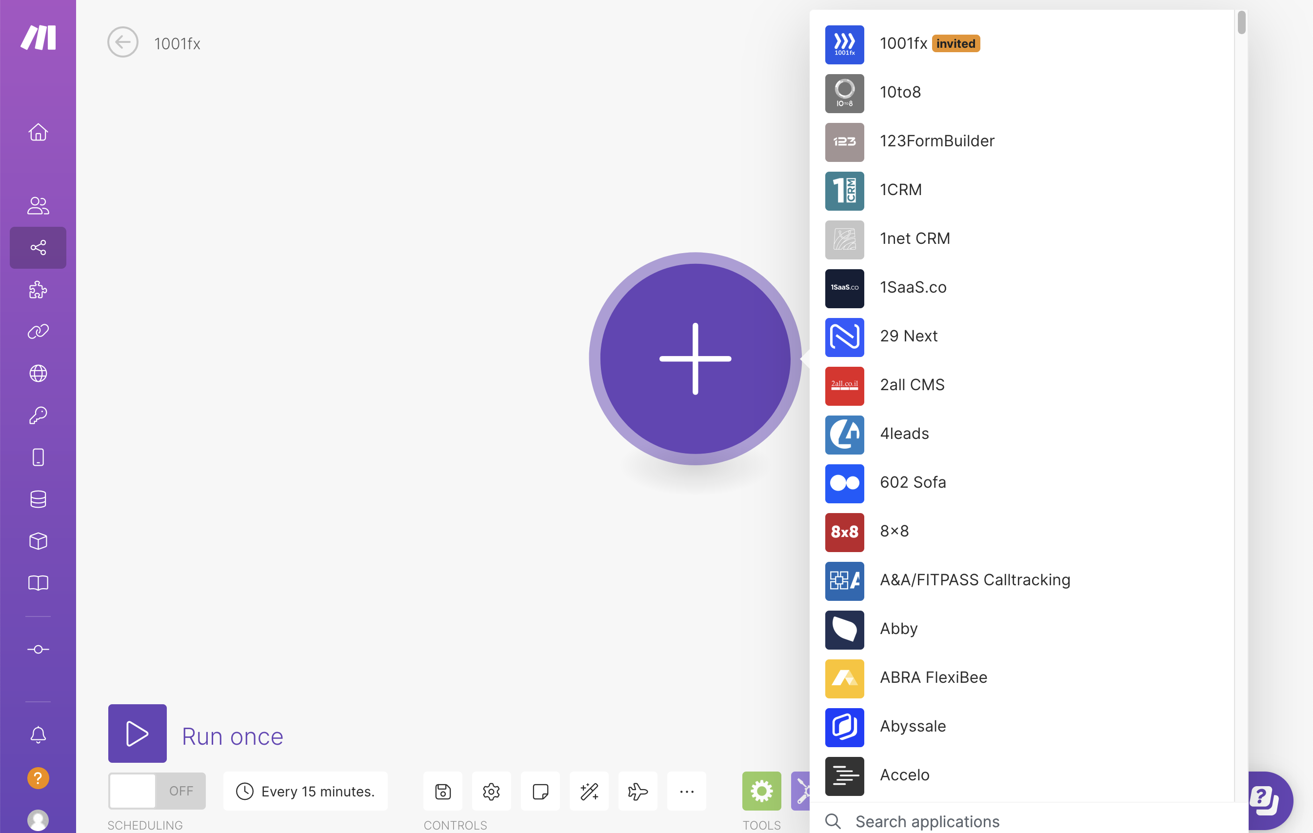 Out 1001fx app is currently in review on make.com. You can already use it by following steps.